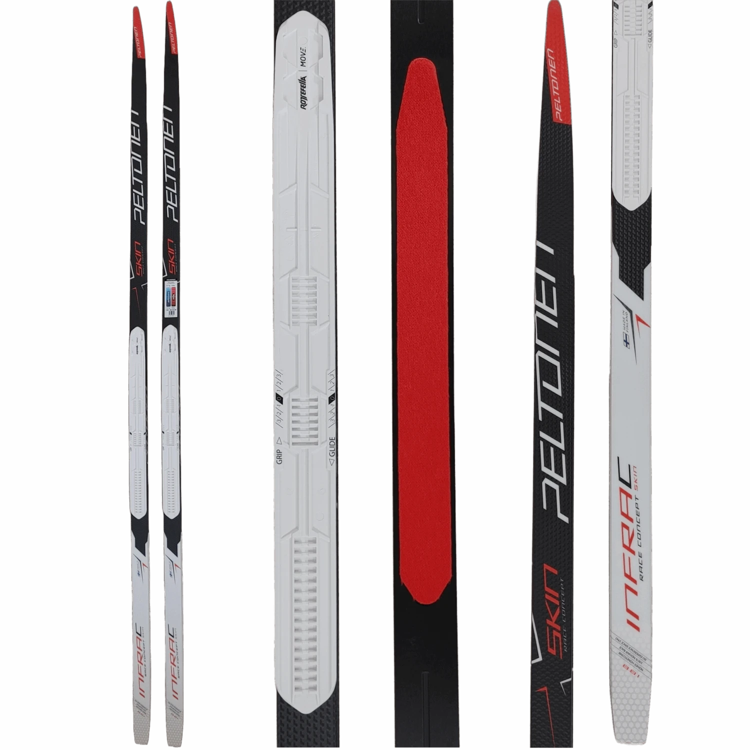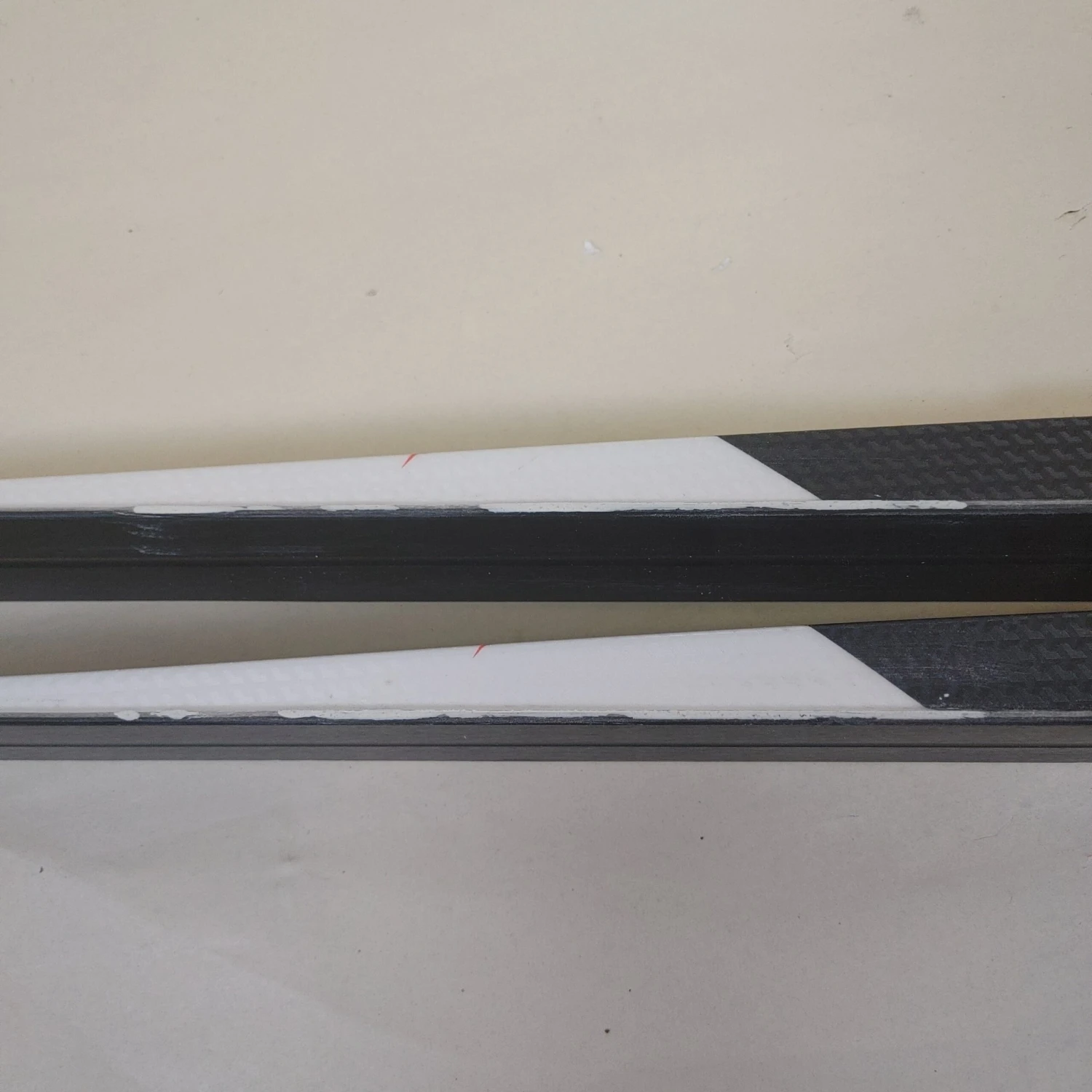 This pair of Infra C Skins was a demo from our backshop. They were used quite a few times on off-track skiing causing some wear and tear. The skis are mounted with a brand new set of skin inserts and using our standard marine epoxy repair, we patched up all the areas where the sidewall started to peel up from the base. The pair is best matched for an 85-90kg skier.