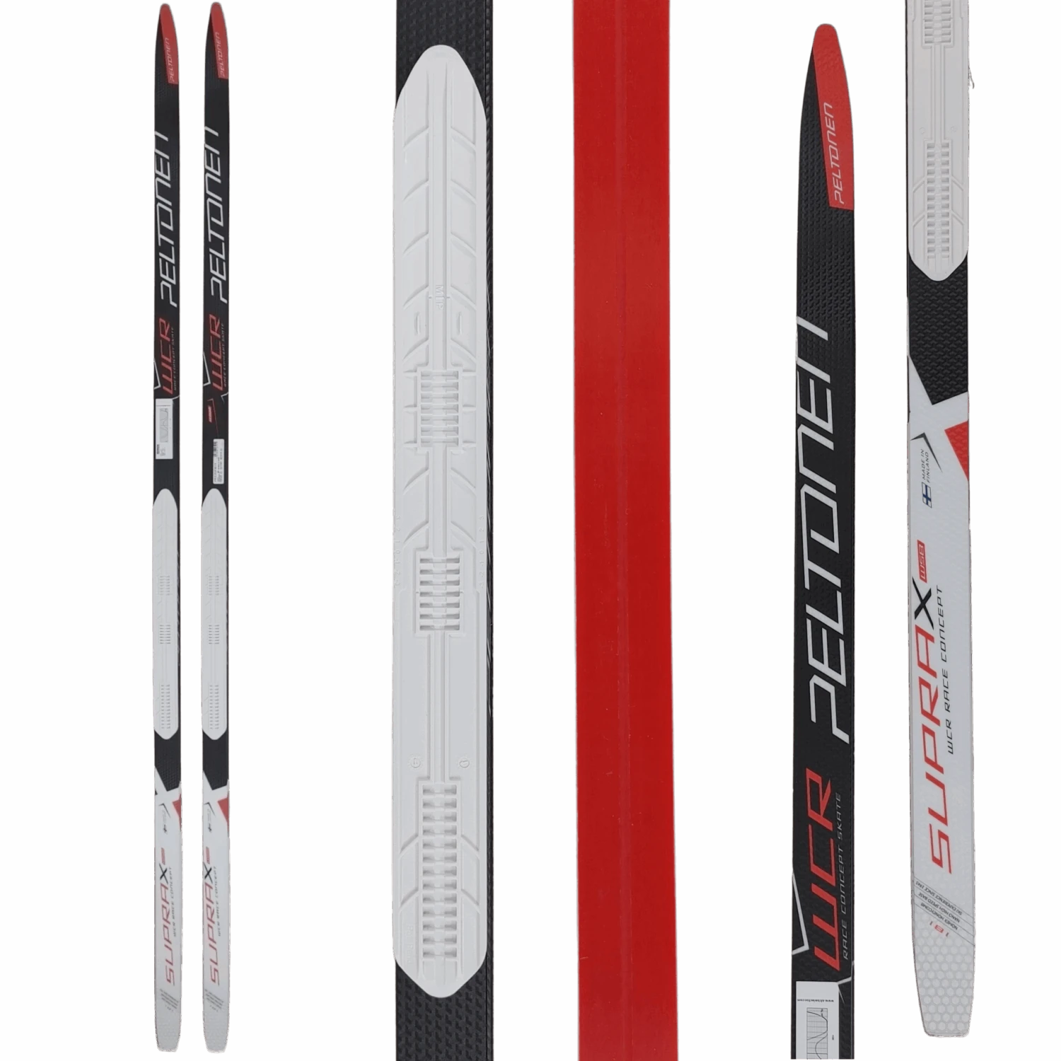 This pair of wet base Supra X skate skis got used a few times on some super aggressive, icy snow and had the edges ridden a little too much. Using our standard marine epoxy repair, we patched up all the areas where the sidewall started to peel up from the base. The pair is best matched for an 80kg skier. Pick these up as a super discounted pair of wet snow race skis, or spring training skis.