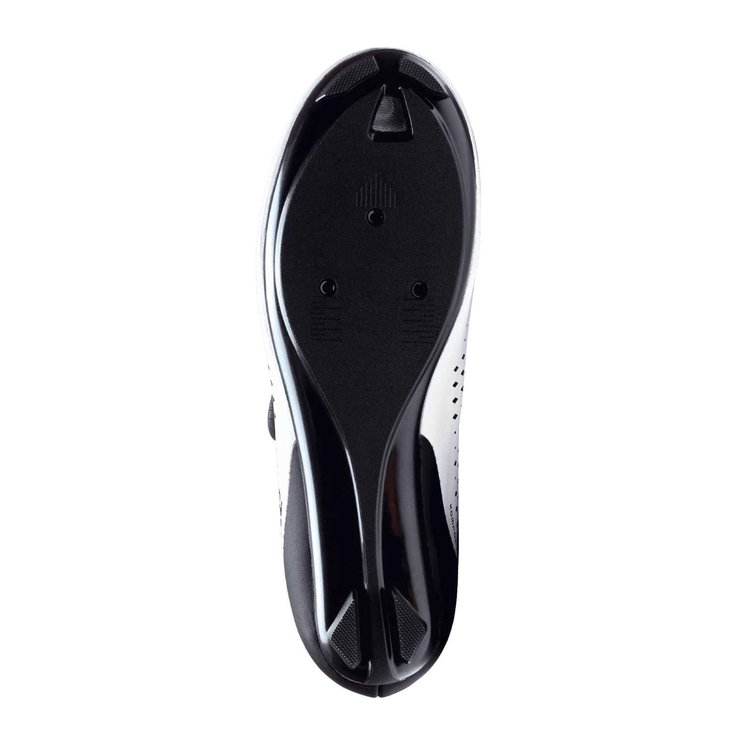 Catlike`s Kompact`O Shoes are the perfect balance between performance and comfort! The R version is for the road, meaning the sole is ready for a 3 bolt road cleat. A breathable construction using lightweight materials and a stiff nylon sole; this shoe is great for those avid cyclists who want a high performing shoe, or for those top athlete who want a cheaper shoe to train in. The engineering put into this shoe ensures efficient energy transfers with every pedal stroke. Micro-adjustable fit means that you will be comfortable all day long. This shoe weighs in at 310g per pair at size 43.