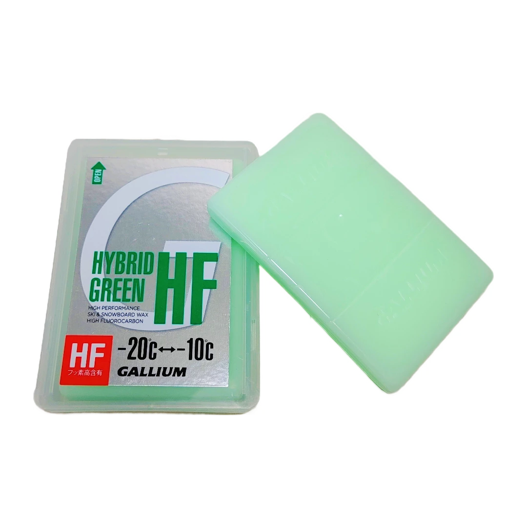 Gallium GREEN HF Glide Wax for cold snow. Generally, HF waxes work poorly in cold, dry conditions, but in dirtier snow, this wax might have the edge. Consider adding a synthetic hardener powder at a 1:1 ratio for better durability and hardness. Drip this wax on first, then tap on the powder, and smoothly iron them out together. Test it as your base wax for race day, but a trade secret, it will probably be beaten out by Rode`s R1P powder. Fluoro paraffins are hazardous to apply! Always use proper safety equipment such as masks and gloves!