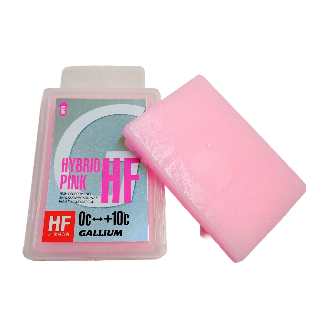 Gallium PINK HF Glide Wax is for wet and slushy snow above freezing. Make sure to use a rill and add some pure fluoro toppers. This wax works great as a base for warm liquids and toppers, or on its own with structuring. Fluoro paraffins are hazardous to apply! Always use proper safety equipment such as masks and gloves!