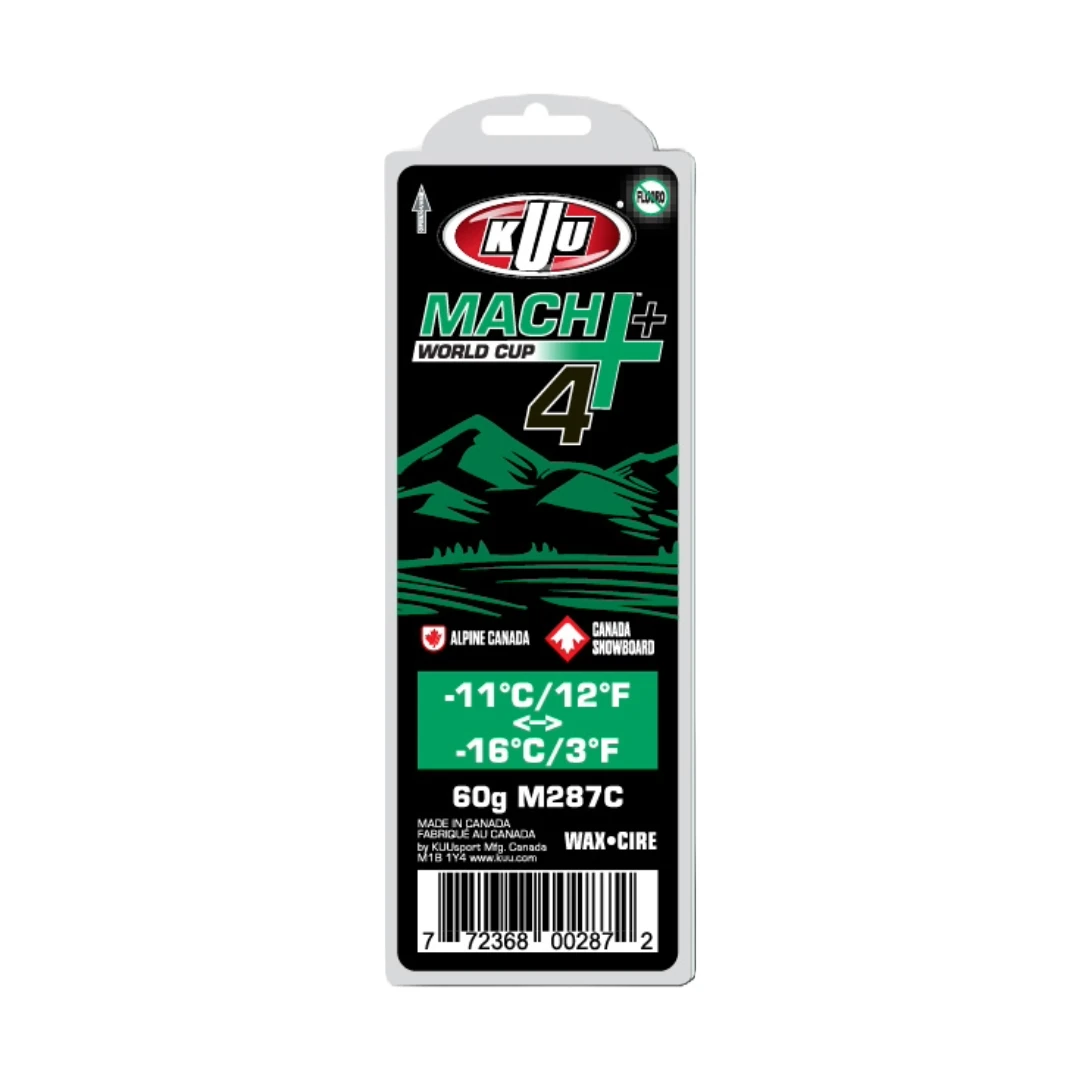 Kuu`s top level fluoro-free race wax made with a Made in Canada standard! The MACH4+ green is for cold conditions.