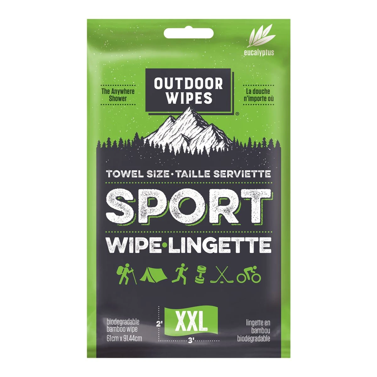 Imagine… You are out on a 10 day remote camping trip in the middle of April. Your significant other starts to smell to the point where you wish you brought a second tent. The lake you are camped on is 10°C, way too cold for most to jump in. Plug your nose no longer! Outdoor Wipes are a perfect way to get a refreshing clean without jumping in that freezing water! The extra large size makes sure you can wipe down your whole body; head to toe. These towels are made of bamboo and completely biodegradable. The XXL size is 2 foot by 3 feet (60x90cm) in size! Stick one or two of these in your bag for whatever your stinky activity may be!