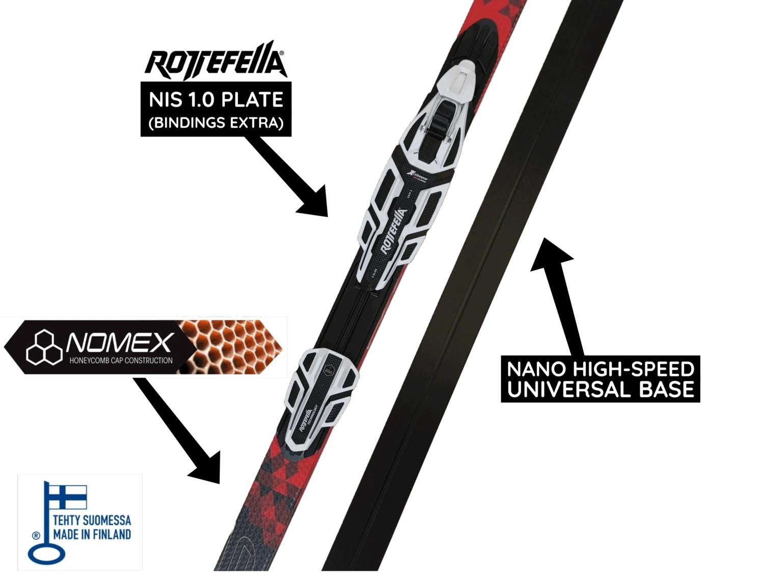 The Infra X UNIVERSAL/COLD skis are Peltonen`s best classic skis for the most common snow conditions. Used by the best athletes worldwide, these skis can be custom-selected for hardwax or Klister grip wax applications. These skis are B-Grade quality from the factory, meaning they either have minor cosmetic defects or the flexes of each ski do not match as closely as we`d like. These skis have old graphical designs and are, therefore, on clearance while supplies last.