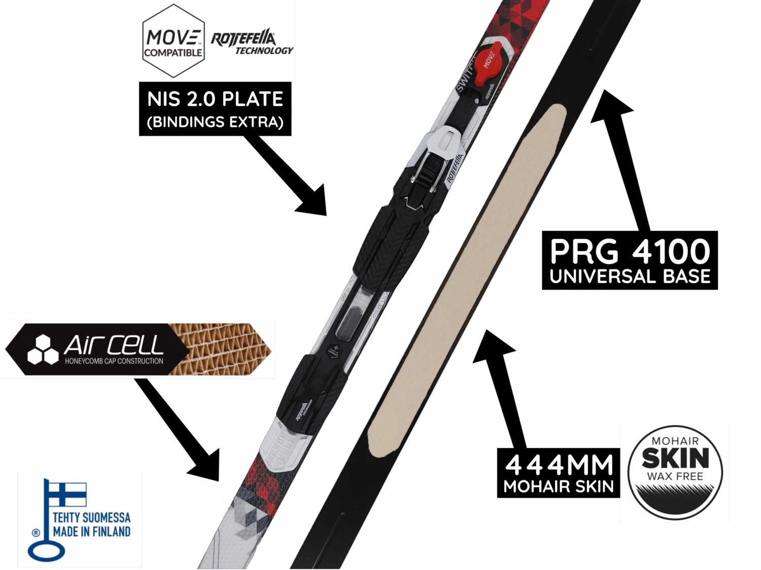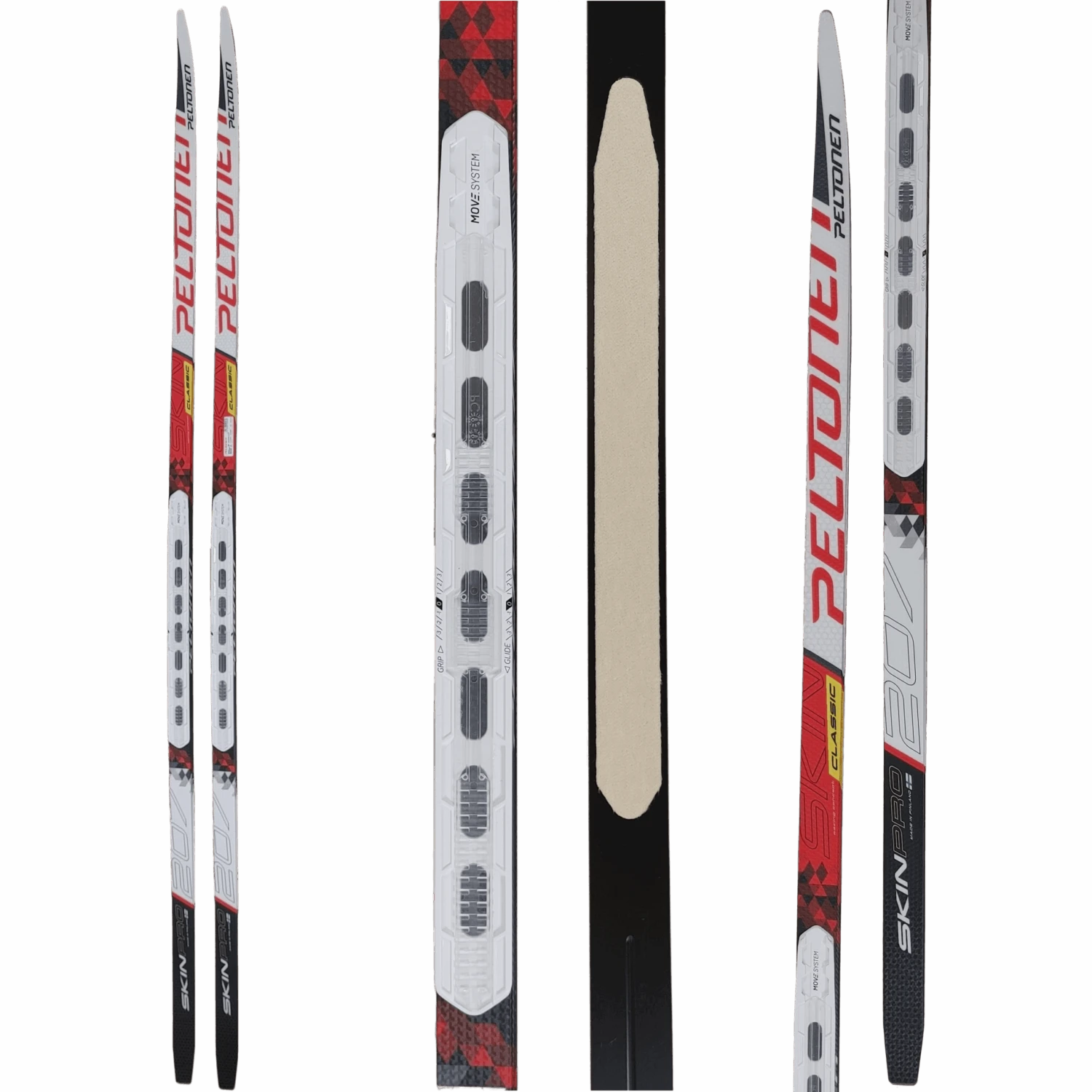 Peltonen SkinPro is an excellent training ski for active skiers or even for racing skiers. This extremely popular ski is built with our special SkinPro Mohair kick waxless technology – it enables easy preparation and handling of ski and no need for kick waxing. SkinPro Mohair skin offer superior grip and glide in all snow conditions and temperatures. Free of charge, these skis come with a MOVE Switch Unit and Insert for the NIS 2.0 plate found on them. This means you can get the MOVE system with a standard NIS binding! Racing series aircell construction and high quality graphite base. These skis have old graphical designs and are therefore on clearance while supplies last.