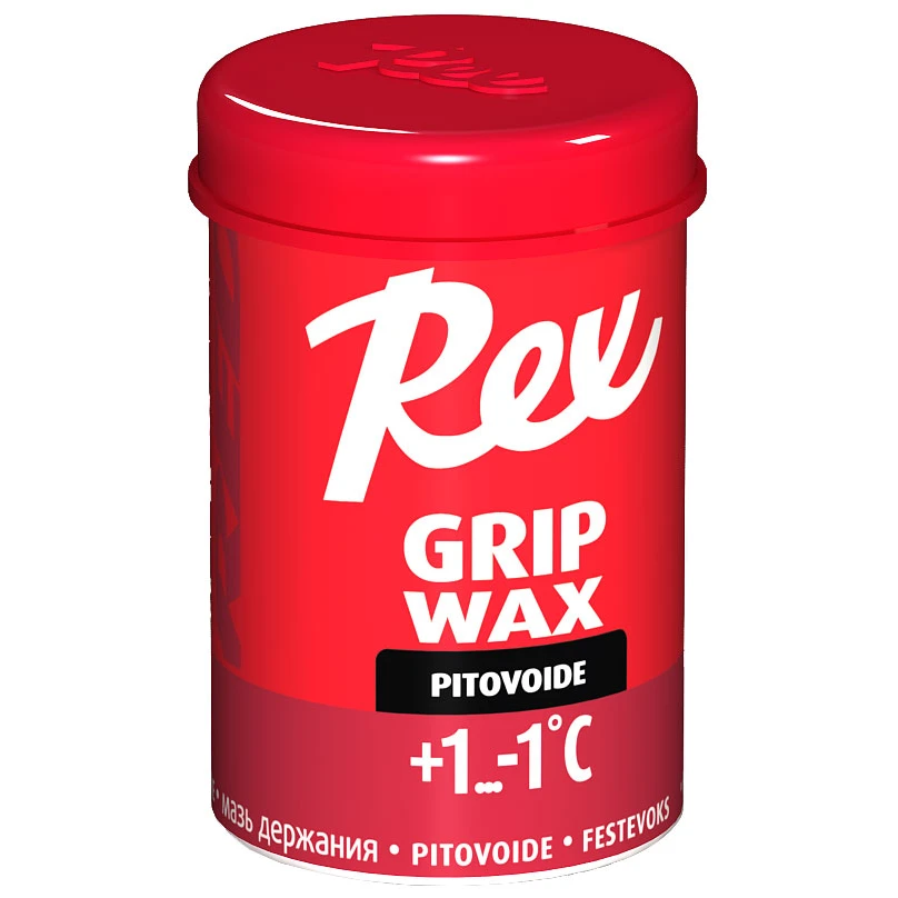 Rex Red grip wax is for near zero conditions, 1°C to -1°C. Contains tar to help keep solid grip on changing conditions with new snow and old snow mixes without icing up. Especially great as a mix or topper for klister to stop icing on the stickier wax.