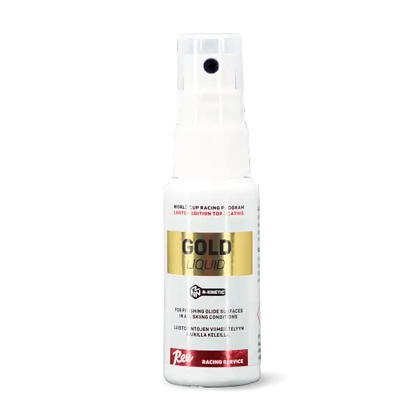The new magic top coat for universally fast skis! This liquid topper is made with level 3 N-Kinetic technolgy for a super hydrophobic coating. It is super simple to use and super durable! Simply spray over your race wax of the day, spread with a cloth, let dry for 5 minutes, and go! Do not brush this wax!!! The magic happens when you leave it the way it is! In tests, it has shown great improvement in nearly all conditions though it is most optimal in humid-wet snow! It makes it so slippery that structure tools do not work properly on top of the liquid. See test results page here: https://rex.fi/en/gold-liquid