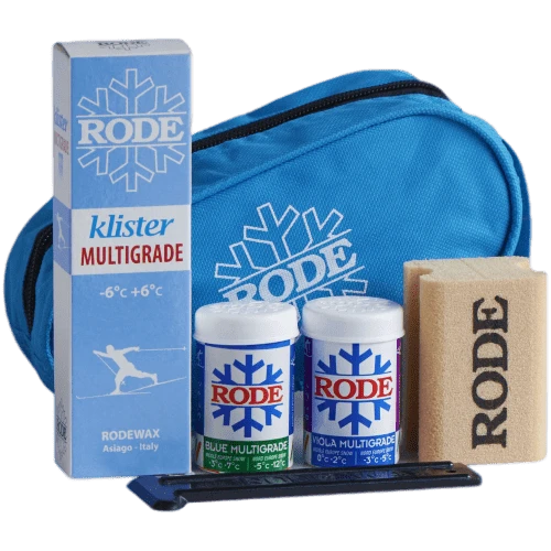 The Rode Classic Wax Kit comes stocked with your most common winter waxes. It comes with 2 hardwaxes: Blue Multigrade -3C/-12C and Viola Multigrade 0C/-5C, and 1 klister: Multigrade +6C/-6C. Also included are a multiscraper and a synthetic cork, all closed up in a convenient travel bag. These Rode waxes will ensure you have great grip all winter long!