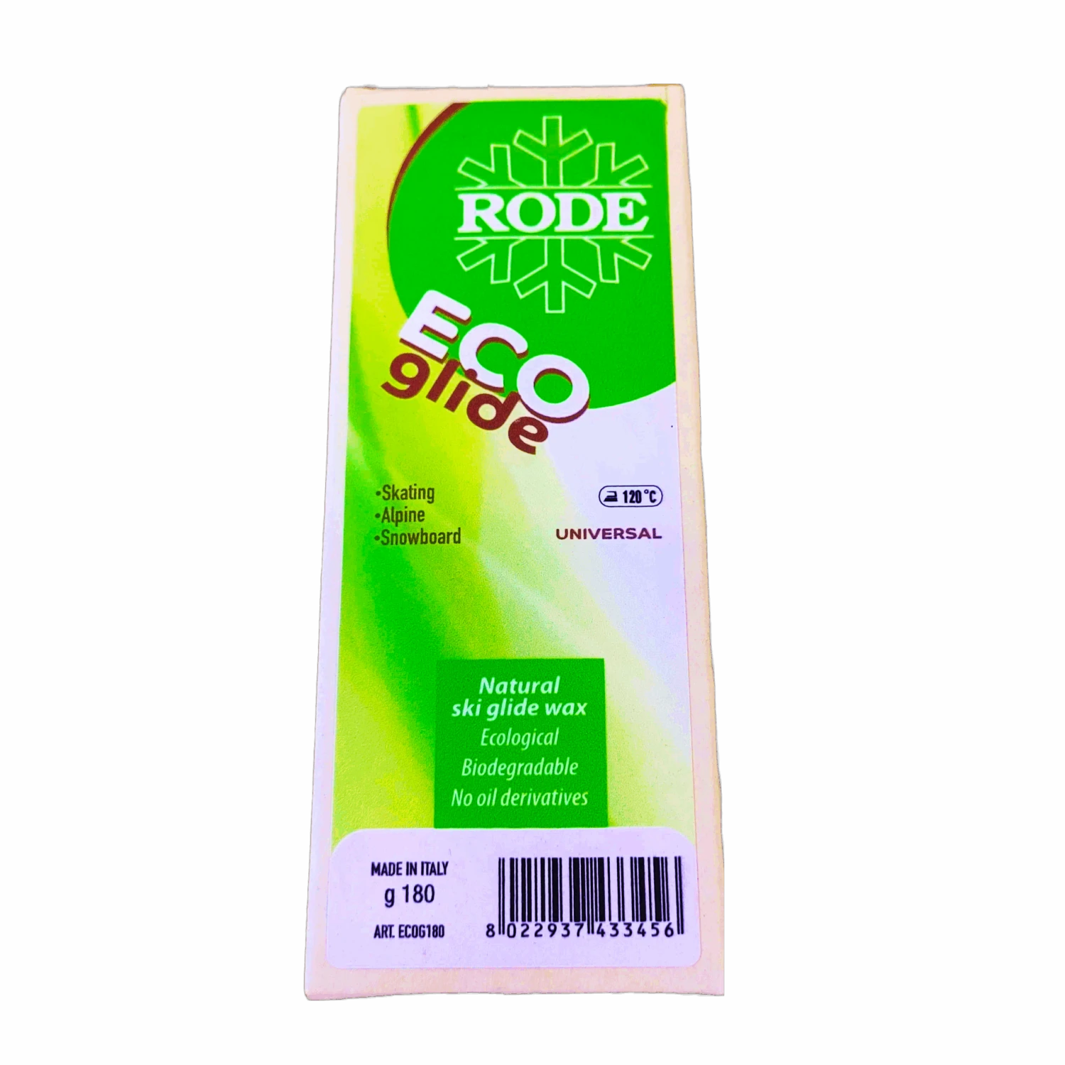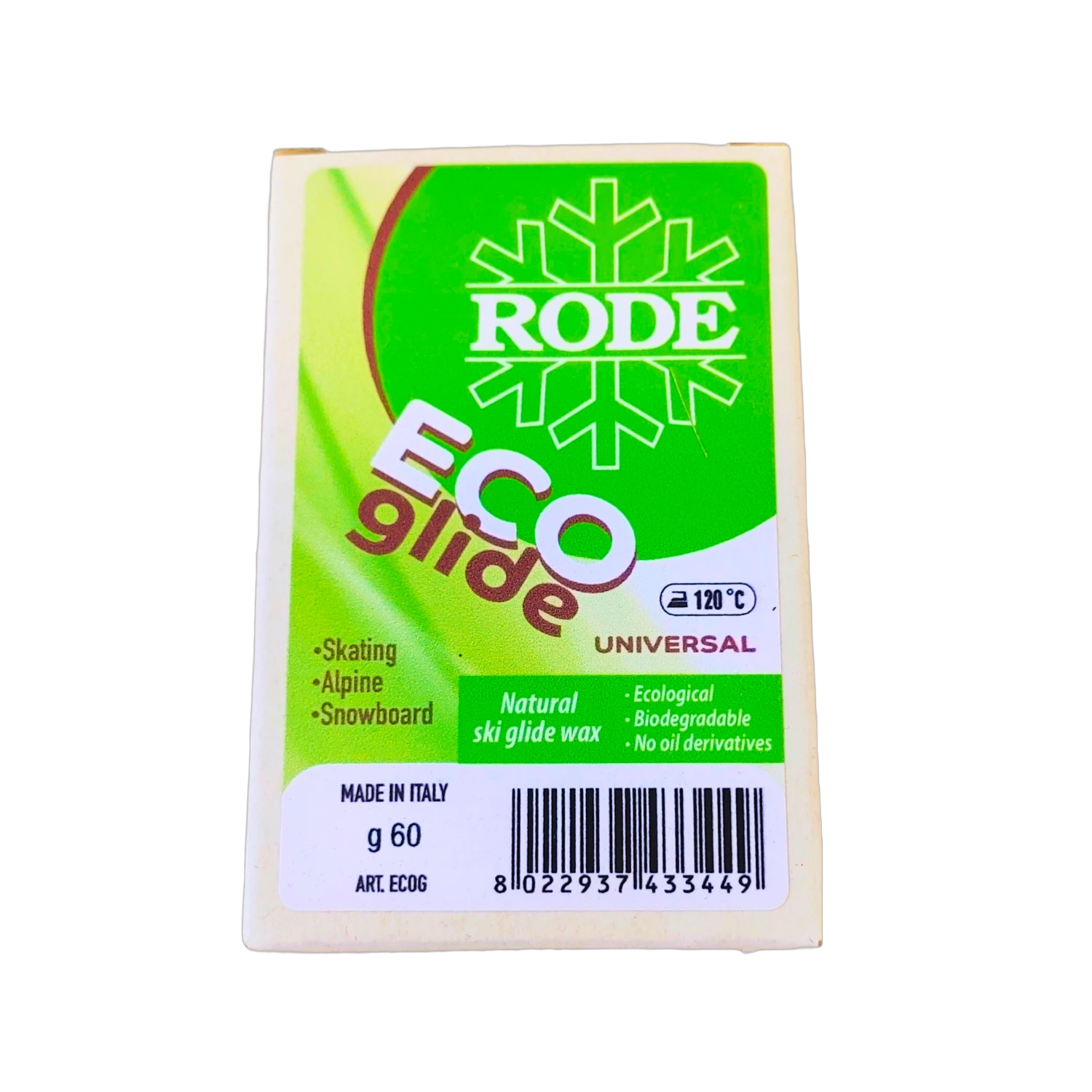 Completely natural, ecological, and biodegradable glide wax for all snow types and temperatures. No ingredients derived from petroleum! This product has surprisingly shown in tests to have excellent abrasion resistance and glide properties. An excellent product for those who want to take care of their skis in an environmentally-friendly way. The packaging is 100% recyclable cardboard! No plastics for the ocean. Packs of 60g or 180g.