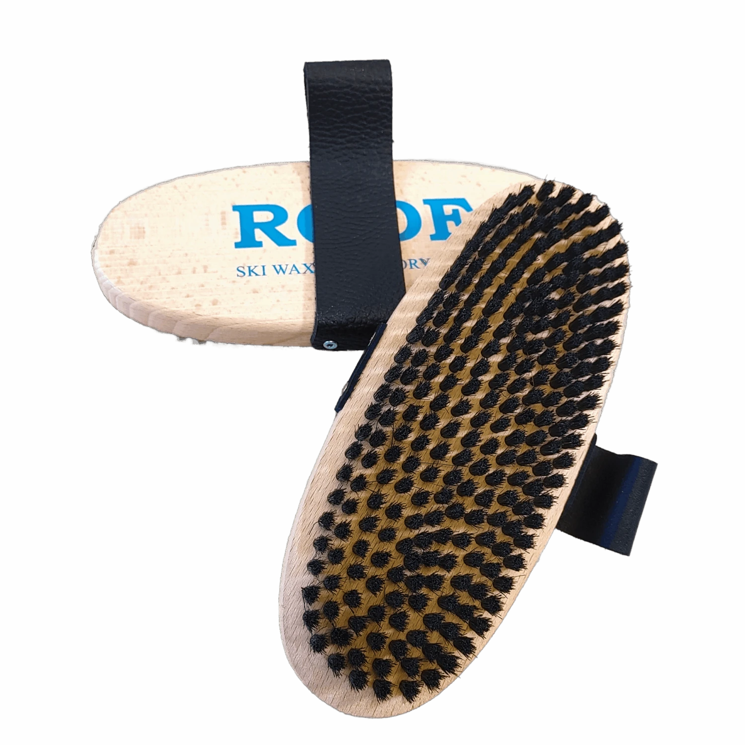 Rode`s horsehair is great for cleaning structure and coarser polishing. This version is larger with a hand strap for comfort, designed for those who wax a lot of skis! Use a horsehair brush between steel/brass and nylon for a better finish on your ski. We have been testing having the horsehair as the final polish as well and have been liking the results. In the new world of fluoro-free waxing, structure and finishing techniques have now become more important than ever.