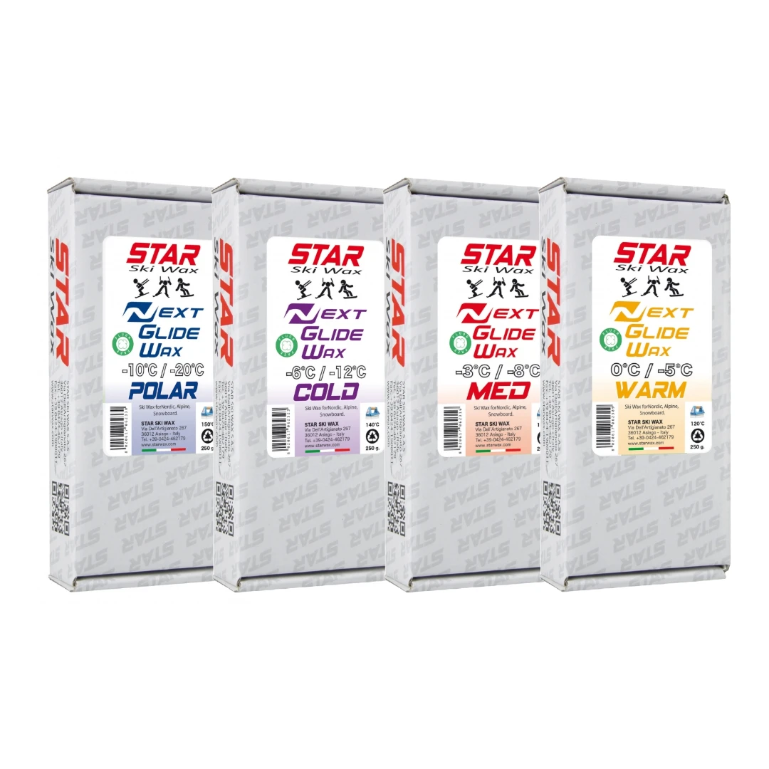 Star`s NEXT wax line is the top of its class! Its a full line containing everything you need for top-level, fluoro-free racing: liquids, blocks, powders, paraffins, and even a dirty snow spin-off line. The NEXT paraffins are designed with both racing and leisure in mind. Star paraffins are a speedy and durable option for recreation, training, or racing (when paired with NEXT top coats). Like all NEXT products, the paraffin has Star`s ceramic technology for the best fluoro-free performance! Best pairs with NEXT powders, blocks, and liquids. Comes in small 60g blocks or bulk 250g blocks (in cardboard boxes for less plastic waste!). If you are buying the whole line, do so here and save yourself an extra 5%!