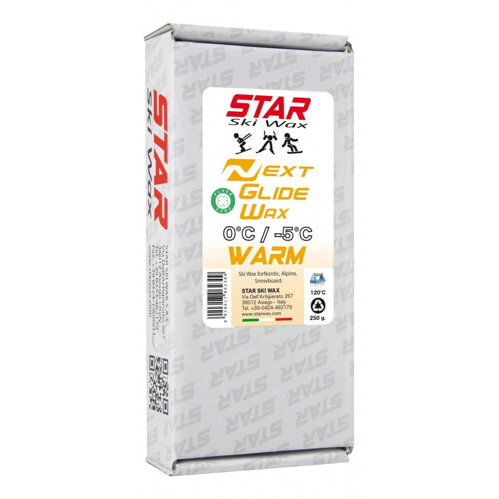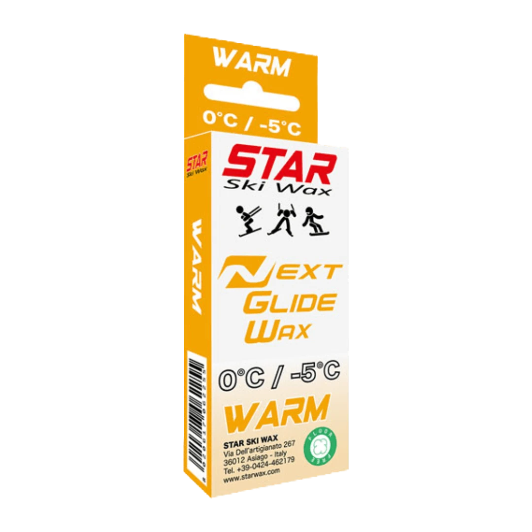 Star`s NEXT wax line is the top of its class! Its a full line containing everything you need for top-level, fluoro-free racing: liquids, blocks, powders, paraffins, and even a dirty snow spin-off line. The NEXT paraffins are designed with both racing and leisure in mind. The NEXT Warm is best for 0°C to -5°C in all snow conditions. Star paraffins are a speedy and durable option for recreation, training, or racing (when paired with NEXT top coats). Like all NEXT products, the paraffin has Star`s ceramic technology for the best fluoro-free performance! Best pairs with NEXT powders, blocks, and liquids. Comes in small 60g blocks or bulk 250g blocks (in cardboard boxes for less plastic waste!).