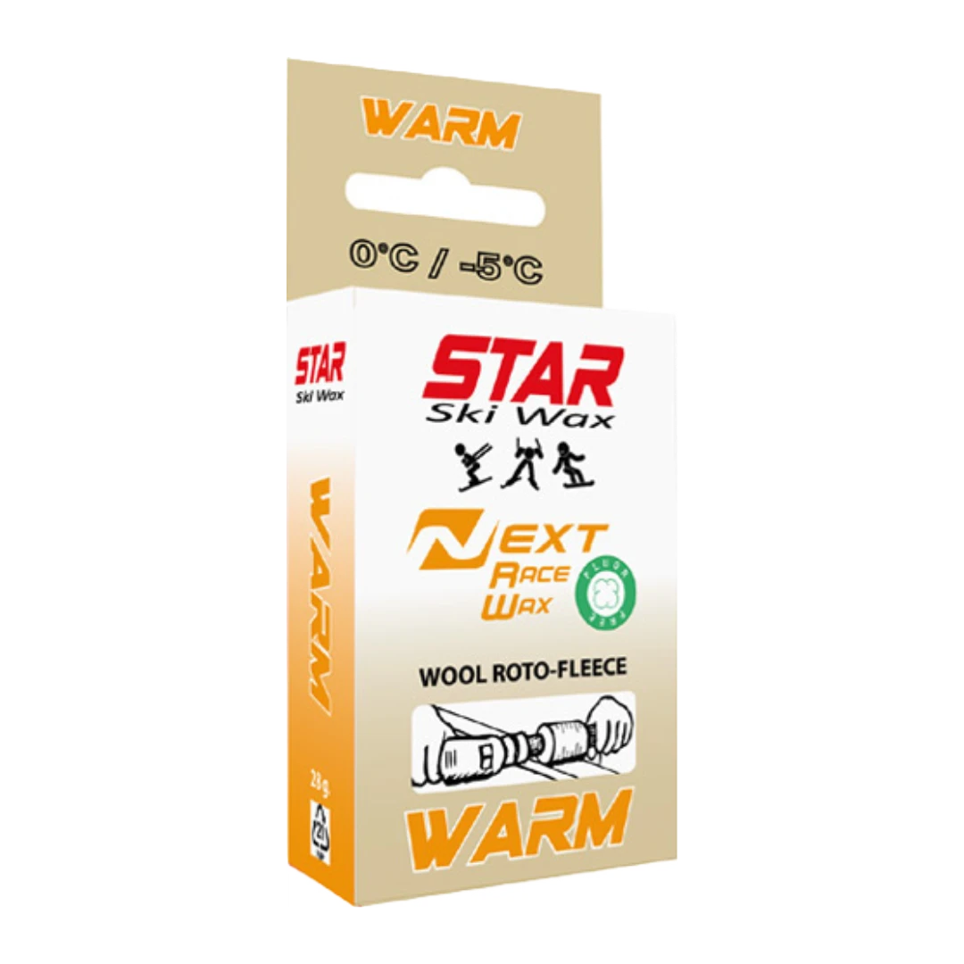 Star`s NEXT wax line is the top of its class! Its a full line containing everything you need for top-level, fluoro-free racing: liquids, blocks, powders, paraffins, and even a dirty snow spin-off line. The NEXT blocks are designed for top fluoro-free performance. The NEXT Warm is best for 0°C to -5°C in all snow conditions. Star blocks are a speedy topper for cold apply application. Apply block directly onto roto wool applicator, run along ski base for 2-3 passes, then finish with soft nylon. For each NEXT block you use, you should use a seperate roto wool applicator. This stops cross-contamination between waxes which may have different additives which may work counter-productively to each other. Make sure to label each wool with which wax it was used with! Like all NEXT products, the paraffin has Star`s ceramic technology for the best fluoro-free performance! Best pairs with NEXT bases. Comes in 28g blocks (actually 32g on a scale) in cardboard packaging for less plastic waste.