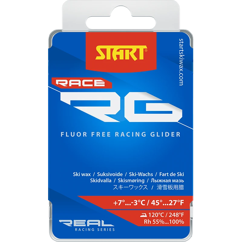 Start`s RG Race waxes are just below the Ultra level waxes. They are still great race waxes for all snow conditions. Several additives are in the wax to reduce friction in wet and dry conditions, as well as increased durablity. RG Race Red is a great race or loppet wax for warm to mild conditions, use RG Race Liquid Waxes on top for added speed.