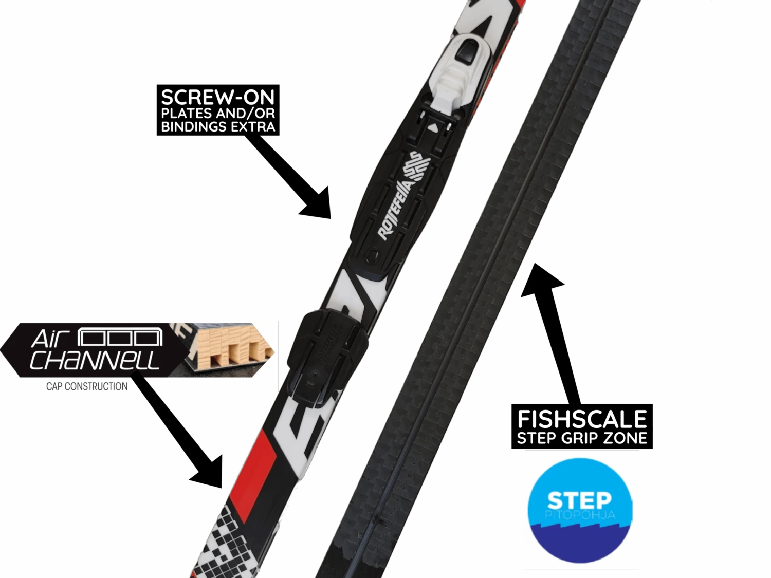 An entry-level classic-technique ski for first-time skiers. Fishscale kick zone provides a waxless ski experience in any type of snow. Wood core construction. Bindings are sold separately (we recommend the Rottefella BASIC binding).