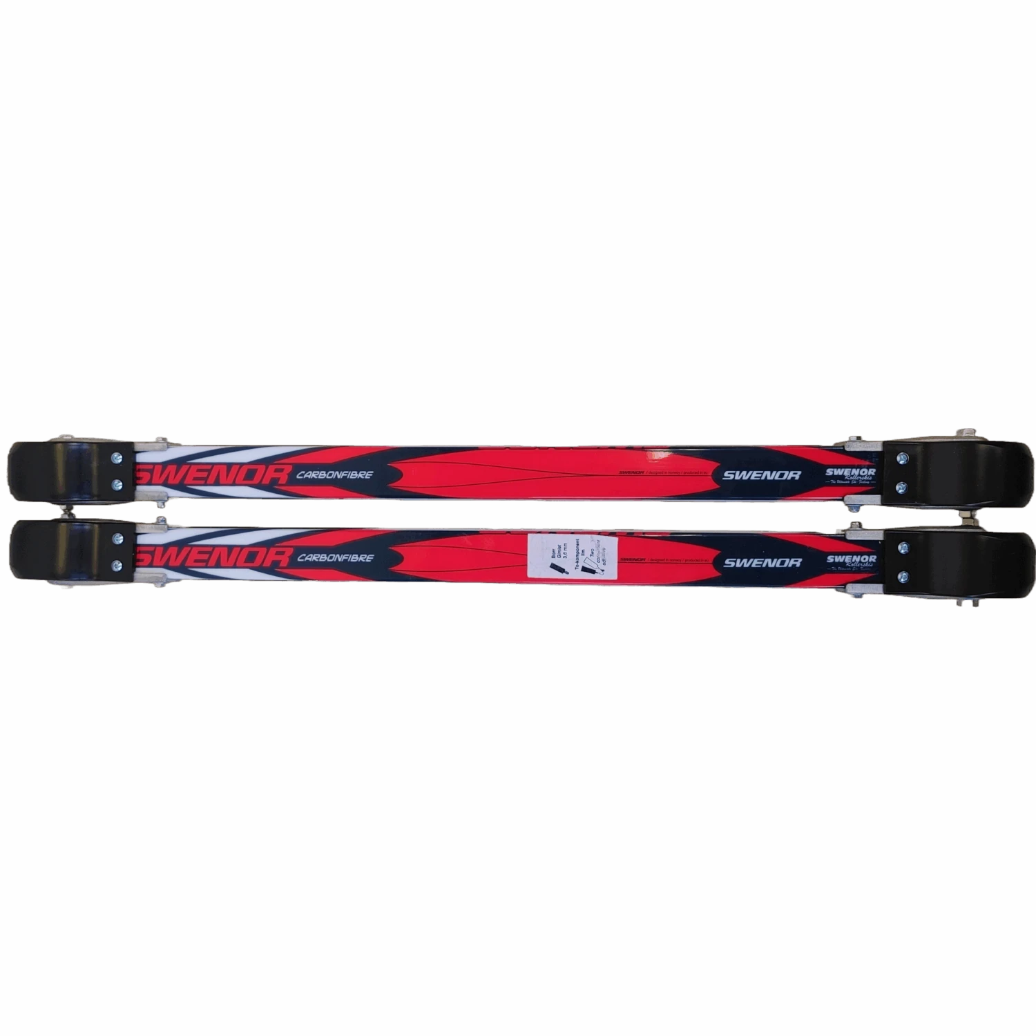 Though Swenor markets this as Cabonfibre, in reality it is made from fibreglass and wood. It is a great classic rollerski with smaller wheels, mainly used for lighter skiers. This ski uses the 65mm x 40mm classic wheels (fronts are ratcheted). The shaft is 720mm long which is slightly shorter than the Fibreglass CL rollerskis. Fitted with #2 wheels from the factory but can be switched to #1 (Fast) or #3 (Slow) upon request. Bindings sold seperately! When purchased together, we will pre-mount bindings onto rollerskis before shipping them out to you, just let us know your boot size! If mounting youself, pre-drill pilot holes and use waterproof glue before screwing bindings on!