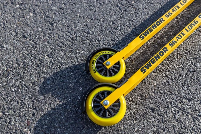 Replacement Skate Swenor Rollerski wheels for the most common Swenor Rollerski models (Aluminum, Elite, Carbon). Speed training wheels help keep for heart rate in zone while allowing you to ski at or near the race pace with race situation technique. Comes as a single wheel or in a 4-pack. If you want to replace all the wheels on a pair of skis, you will have to purchase four wheels in which get the full-set four-pack for 10% off. These wheels come pre-assembled with bearings, axle bolt, spacers, a washer, and a nut for an easy swap. Wheel dimensions: 100mm x 24mm.
