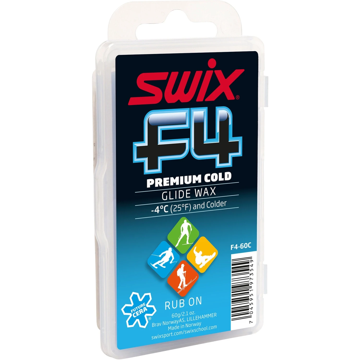 F4 Cold Premium Glidewax Solid is a convenient rub on performance wax for warm to cold weather conditions. The new F4 formula offers more durability and more economical for a fluoro free option. It contains no solvents and comes with a cork on the back of the packaging. Can be applied onto cross-country skis, alpine skis and snowboards.