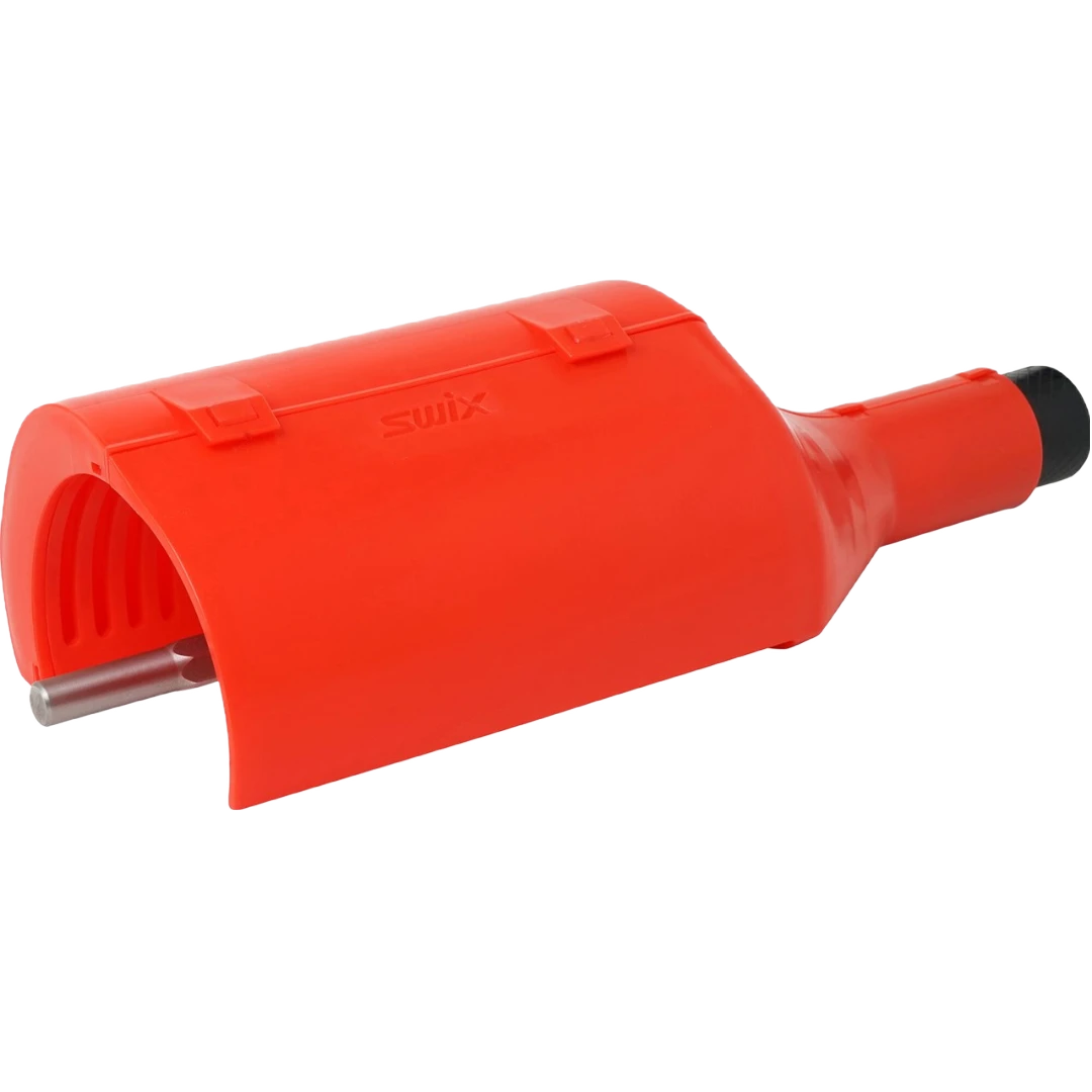 Shielded 100mm or 140mm roto handle with vacuum hose connection. This roto handle is well designed by having the vacuum capabilities being incorporated into the handle and shield. The hose attaches to the base of the handle making sure it is out of the way and free from your view of the ski. Particles get sucked out through the shield, out the handle, and through the hose. Hoses sold seperately.