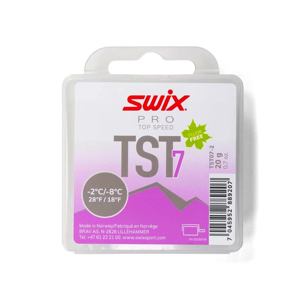 Swix`s newest fluor-free race wax designed for roto wool application. The TS Turbo line is Swix`s fastest fluor-free wax yet. TS7 is for mild, sub-zero dry snow.