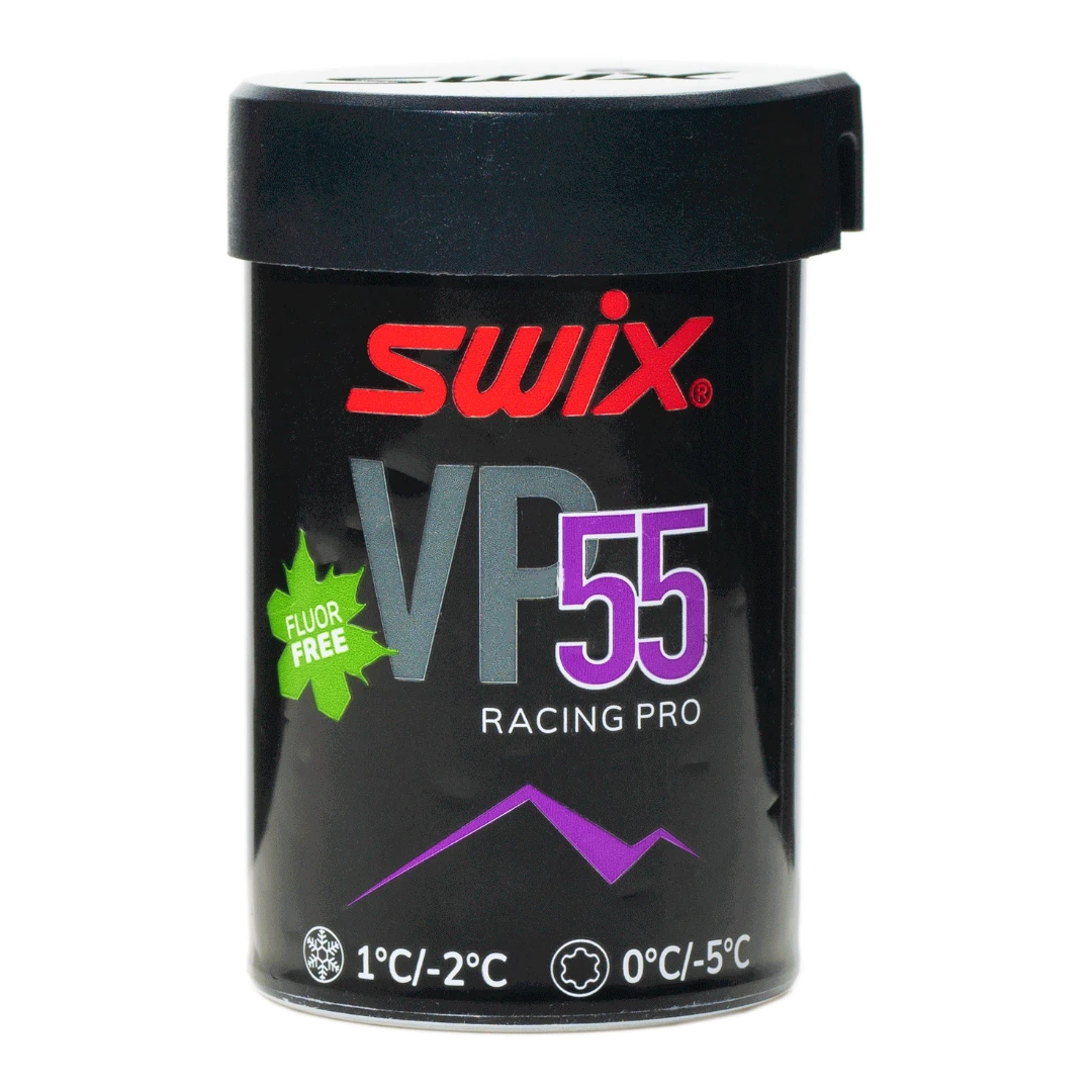 VP55 Dark purple kick wax designed for moist, and new or new fallen snow around zero. Can also be used on older snow just below the freezing point without sacrificing glide.