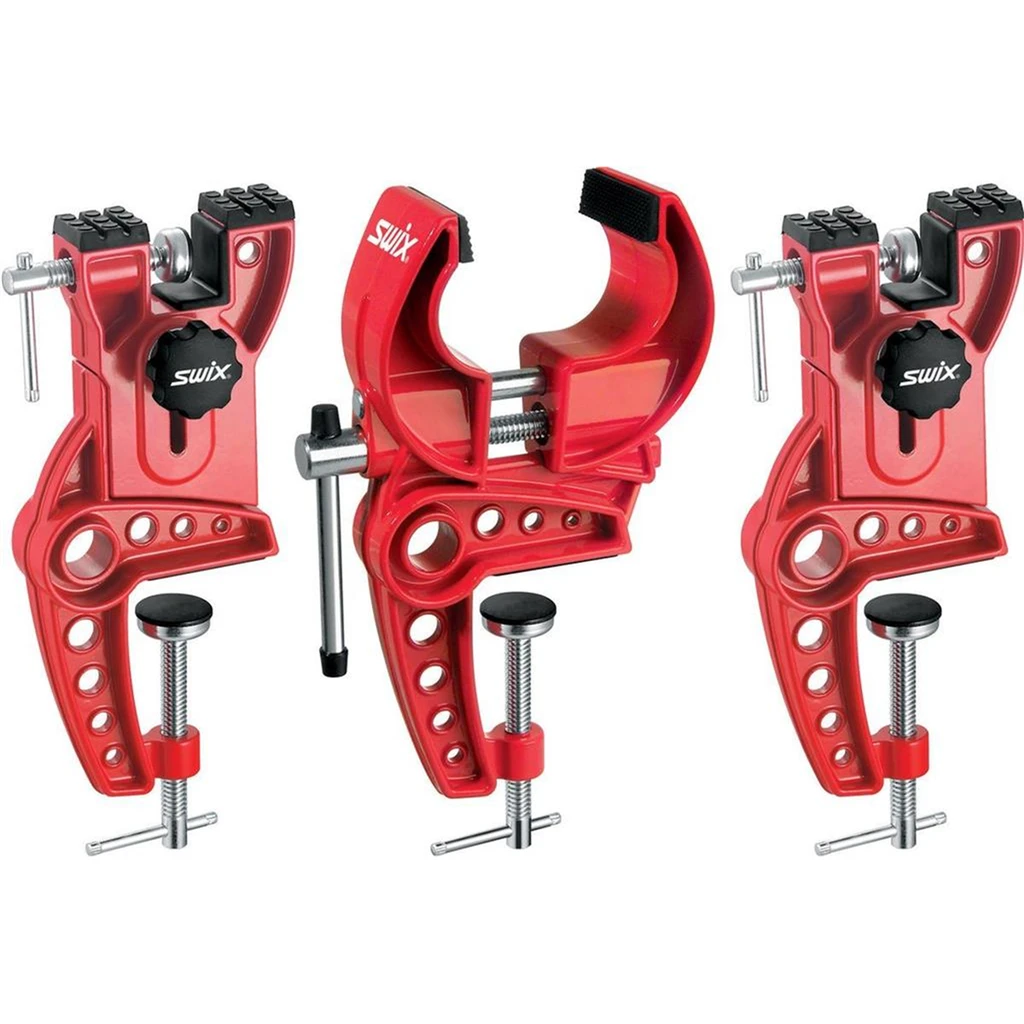 This Swix vise is the top-seller in Alpine vises! Adjustable between 40mm and 100mm for use on most alpine skis. The center vise is wide for better grip on sidewalls. Adjustable angle for desired working position. This vise is best paired with the universal adapters.