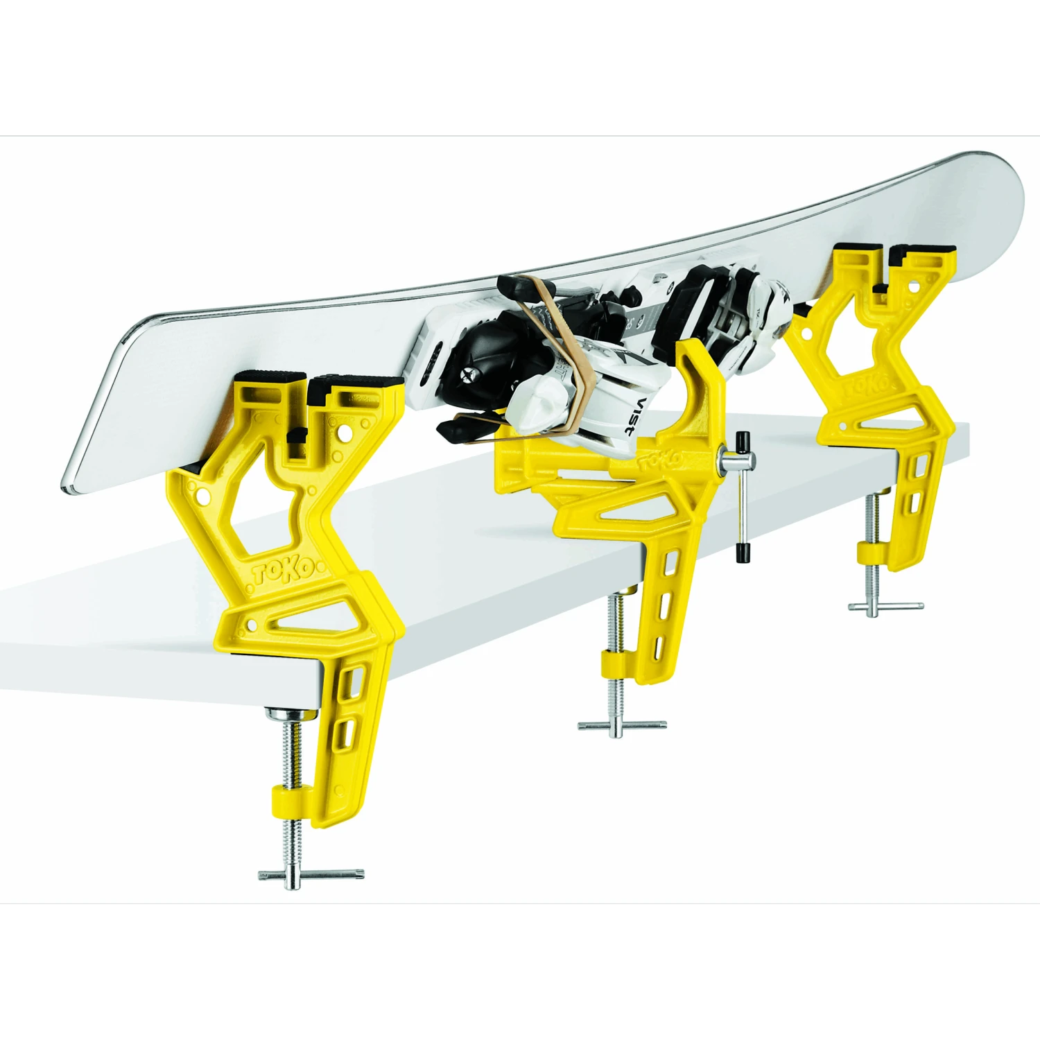 Entry-level alpine ski vise with 3 different ski positions. Center vise grips skis between 35mm and 90mm. This vise allows you to do edge work at 90° or 60°, or base work while the ski is flat.