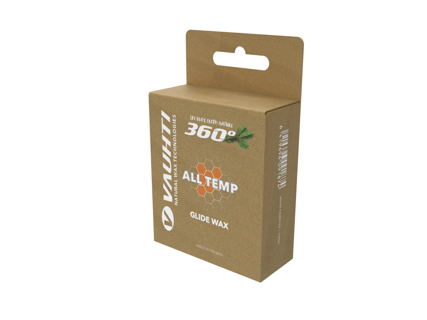 Vauhti`s new 360 wax line up of environmentally friendly products are Vauhti`s latest waxing innovation. The 360 All Temp melt wax is an eco-friendly product in environmentally friendly packaging. It is made for a wide range of temperatures and conditions. This wax is best served as a base wax.