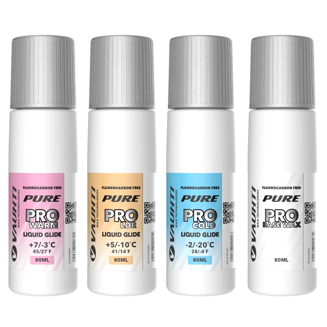 Buying the whole line? Do it here in one click and save yourself 5%! Vauhti PRO was the top level of fluoro-free waxes until their RACE series of liquids came out! PURE PRO fluoro-free liquid glide waxes are processed in two steps. First powder-form raw materials are homogenized and then processed in organic solvents to give high-performance liquids in racing skiing. High-quality hydrocarbon ingredients, zinc stearate and silicon wax gives excellence performance and good durability to the products in all weather conditions.