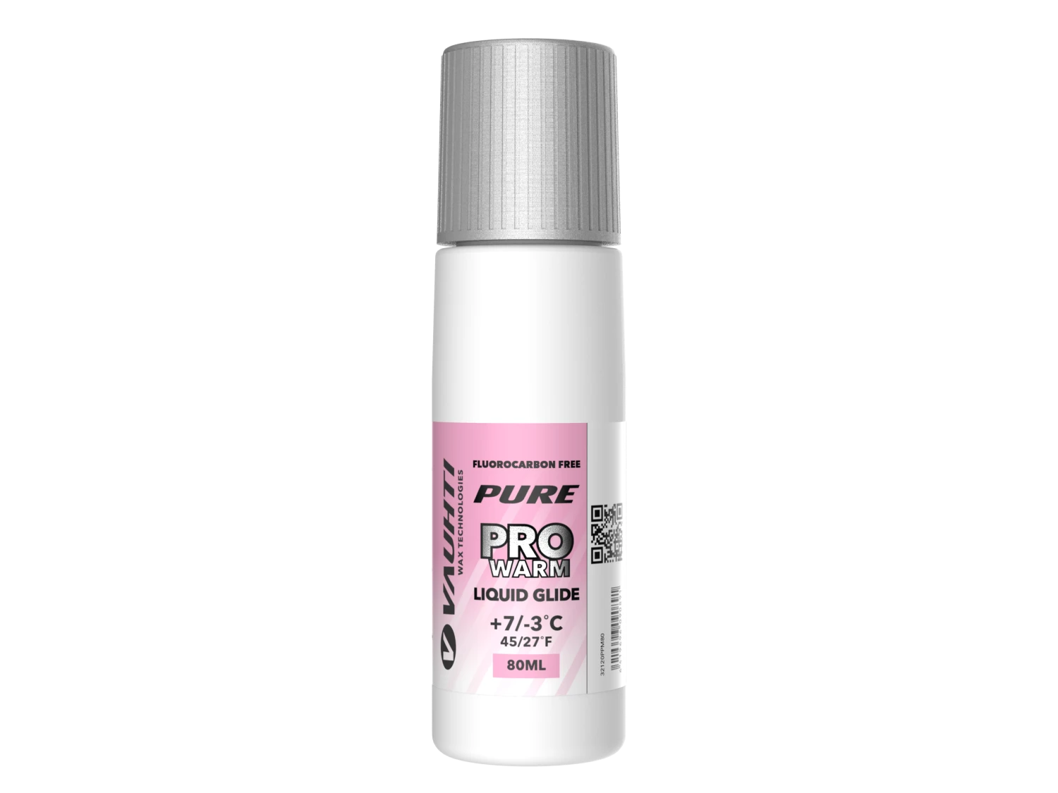 Vauhti PRO was the top level of fluoro-free waxes until their RACE series of liquids came out! PURE PRO fluoro-free liquid glide waxes are processed in two steps. First powder-form raw materials are homogenized and then processed in organic solvents to give high-performance liquids in racing skiing. High-quality hydrocarbon ingredients, zinc stearate and silicon wax gives excellence performance and good durability to the products in all weather conditions. Especially for old and artificial snow. PURE PRO WARM Liquid is for saturated snow above -3C. It is usually used as a top coat for base melt waxes or powders, but can also be used as a base wax on its own.