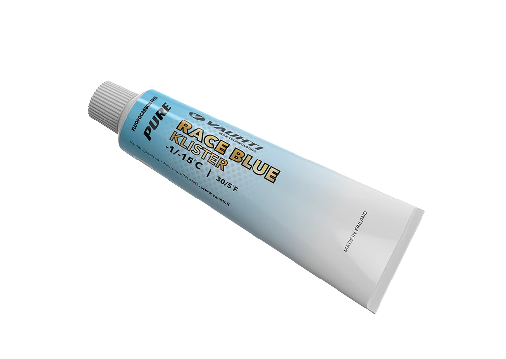 PURE RACE KLISTERS are the fluoro-free replacement for the old Vauhti KF klister line. These are racing klisters for those who want their klister to glide fast. The blue klister is for icy snow or as a base for softer klisters and hardwaxes. Blue klisters are great for old, refrozen snow or artificial.