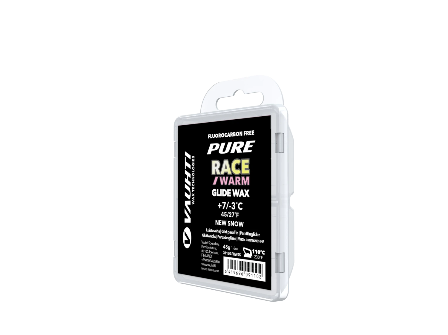 PURE RACE NEW SNOW WARM glide melt waxes are intended specifically for competitive skiers and demanding active skiers. High-quality hydrocarbon ingredients, zinc stearate and silicon wax gives excellence performance and good durability to the products in all weather conditions. Works best in saturated, new snow above -3C.