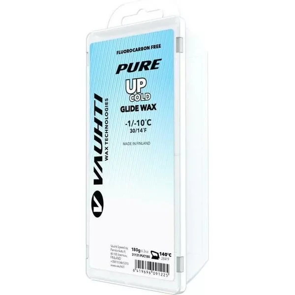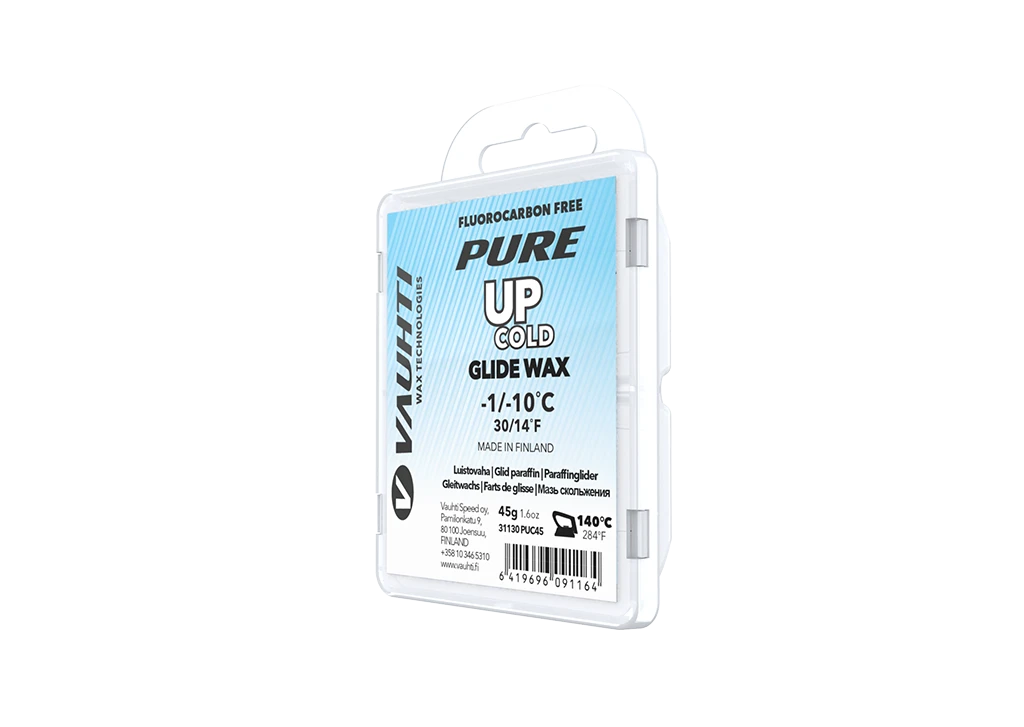 PURE UP fluoro-free glide waxes are intended active skiers and as a training wax for competitive skiers. High-quality hydrocarbon ingredients, zinc stearate and silicon wax gives excellence performance and good durability to the products in all snow types and weather conditions. UP COLD paraffin is for all snow types below 0C.